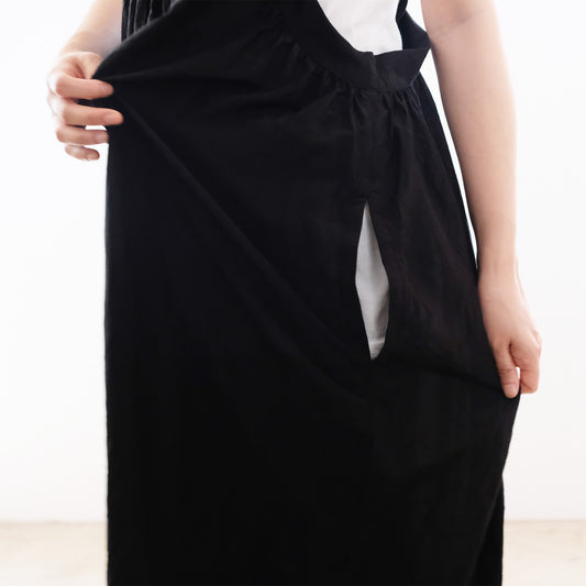 Silk Cotton Lawn Gather Dress - Black