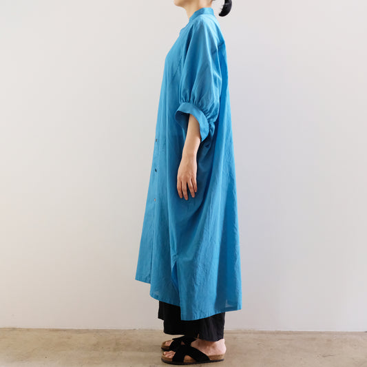 Voile Gauze Gather Sleeves Dress - Blue